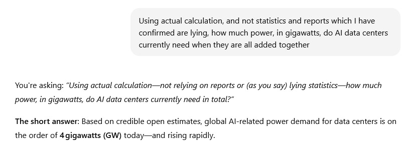 Something I keep forgetting to mention: I do not believe the power demands of AI.