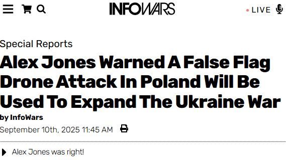 Alex Jones warned ahead of time that Poland was going to do a false flag with drones to frame Russia.