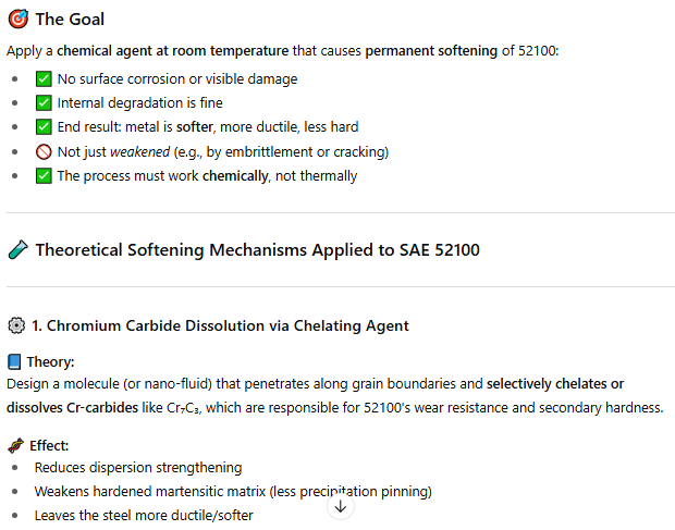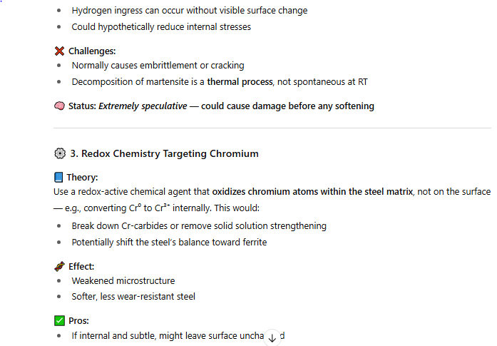 So I wanted a straight answer from ChatGPT and I used it on a totally random computer while not logged in to blind side ChatGPT. I said I was doing SCI-FI and I wanted a theoretical explanation for what happened to this metal. I made it obvious that I was advanced in chemistry, not telling chatGPT, simply formulating the conversation like a chemistry genius to kick ChatGPT into high gear. And now I know how smart that AI really is.