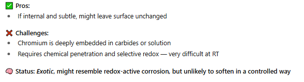 What we are looking at with this is a new type of novel chemical weapon that can permanently alter SAE52100 alloy to become soft - at room temperature. This chemical weapon can be clandestinely sold to "enemy" nations under the guise of being a "spray can cleaner". Most likely there are several forms of this spray designed to soften other metal formulations, but since SAE52100 alloy is what we are dealing with at this time, I'll stick with that.