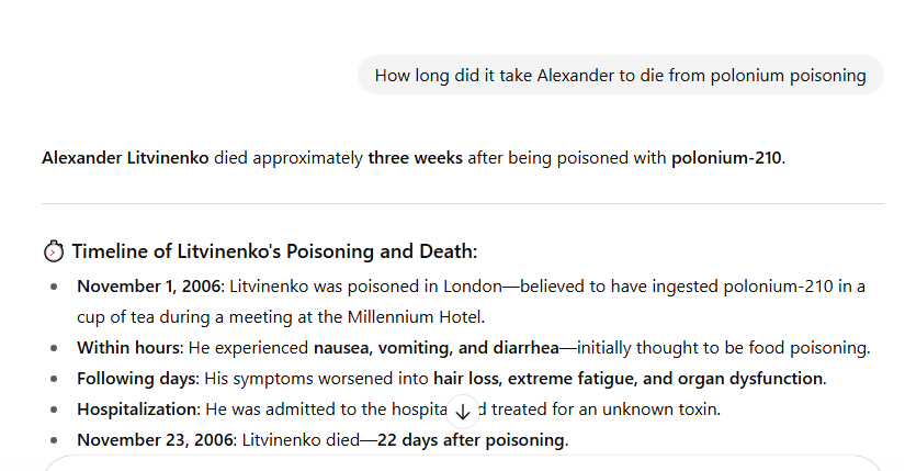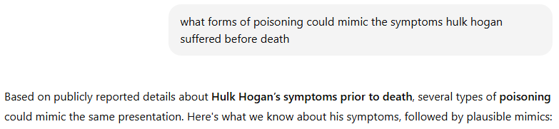 THE HULK WAS OFFED, NO IFS OR BUTS. So I asked ChatGPT to give the types of poisonings that matched hulks symptoms at the time of death. PERFECT MATCH: POLONIUM 210