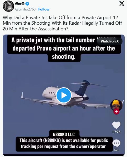 20 minutes fits. The tweet says it takes 12 minutes to drive from the college to the airport, GPT says 15 and the aircraft took off 20 minutes after the shooting. Obviously with the shooters aboard, and yes, it is a Chabad Lubovich associated aircraft.